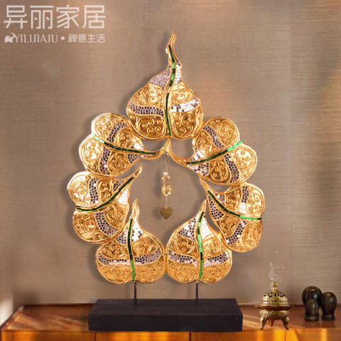 泰国工艺品装饰摆件 客厅玄关新古典辟邪实木菩提风铃桌面摆设