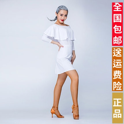 尚芭菲一字领拉丁舞蹈连衣裙女成人艺考演出服装荷叶练功服中袖春