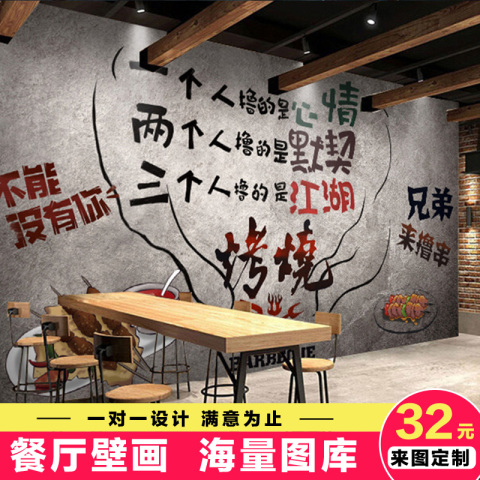 火锅烧烤店壁纸3d个性复古背景墙冒菜墙纸主题餐厅酒店无纺布壁画