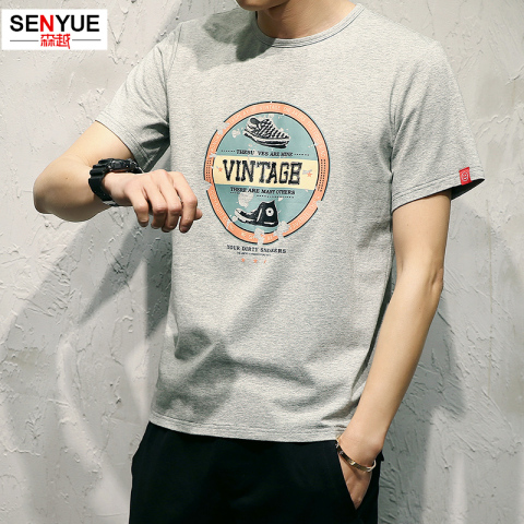 日系圆领个性印花T恤衫