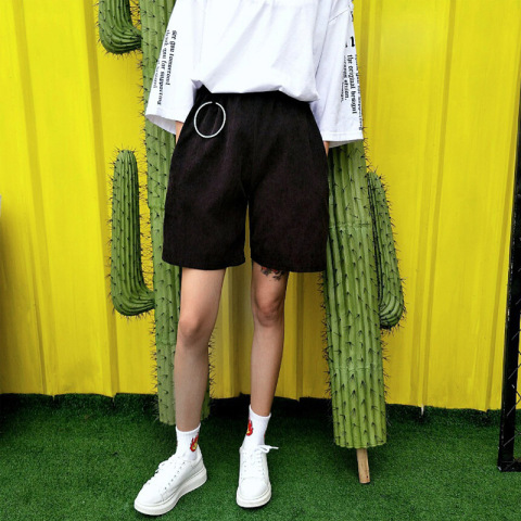韩国ulzzang原宿风复古街头圆环装饰短裤