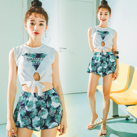 韩国体裙式小胸聚拢比基尼三件套