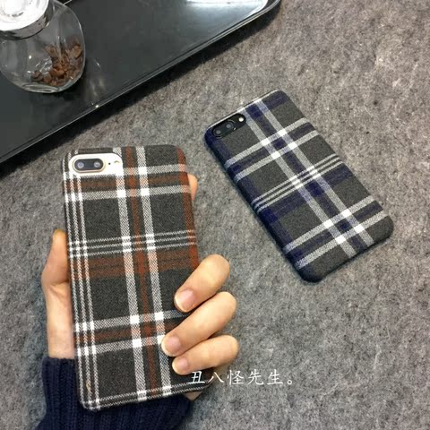 iPhone手机壳 复古格子毛绒布质软套情侣款