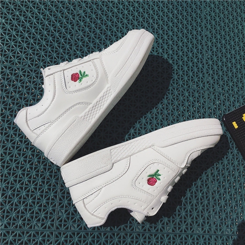 ulzzang原宿运动玫瑰刺绣小白鞋