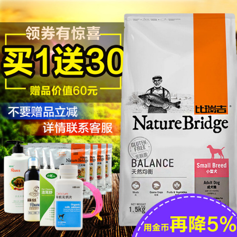 比瑞吉小型犬成犬狗粮1.5kg泰迪/贵宾比熊博美通用型宠物天然包邮