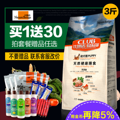 比瑞吉俱乐部幼犬狗粮1.6KG泰迪/宾比熊金毛萨摩耶宠物天然粮包邮