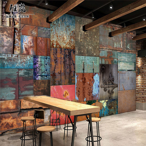复古工业风3d铁皮酒吧咖啡馆电视背景墙纸大型壁画旧金属工装壁纸