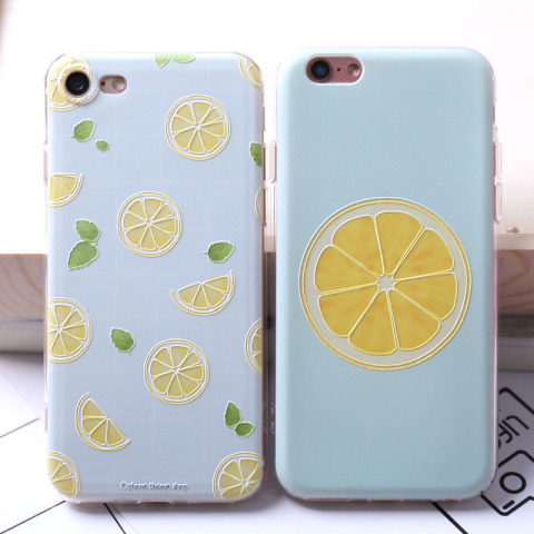iphone7苹果6s手机壳6plus全包软壳5se清新柠檬水果浮雕软壳情侣