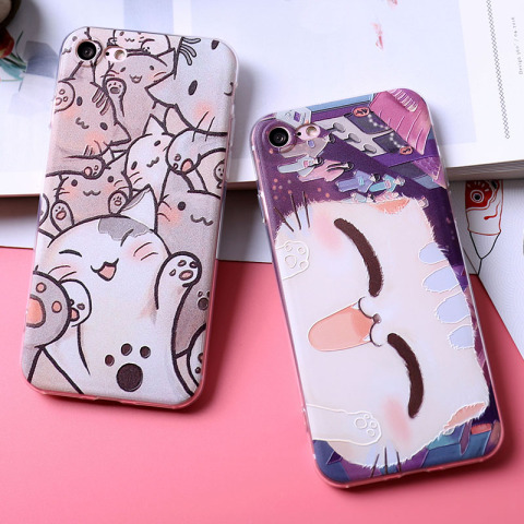 iphone7苹果6s手机壳6plus硅胶全包软壳5se防摔浮雕闺蜜猫咪女款
