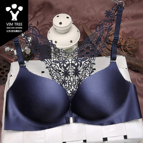 美背性感无痕内衣文胸无钢圈少女聚拢挂脖小胸罩蕾丝前搭扣包邮