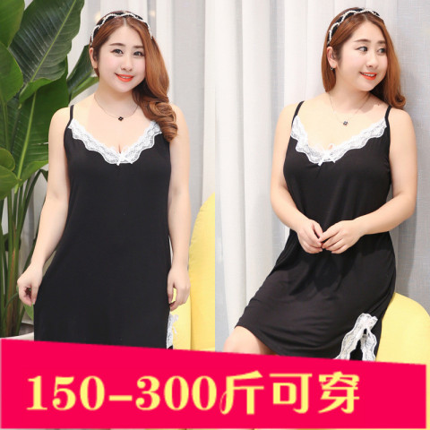 300斤大码女装胖mm穿莫代尔吊带背心睡裙女夏薄款蕾丝性感v领