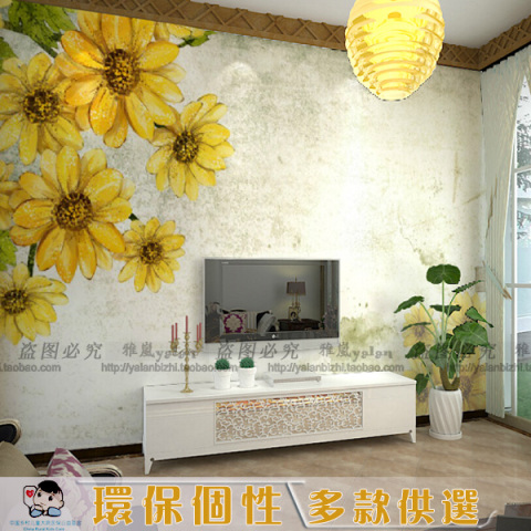 环保大型定制壁画中式向日葵花瓣墙纸客厅沙发电视背景墙壁纸怀旧